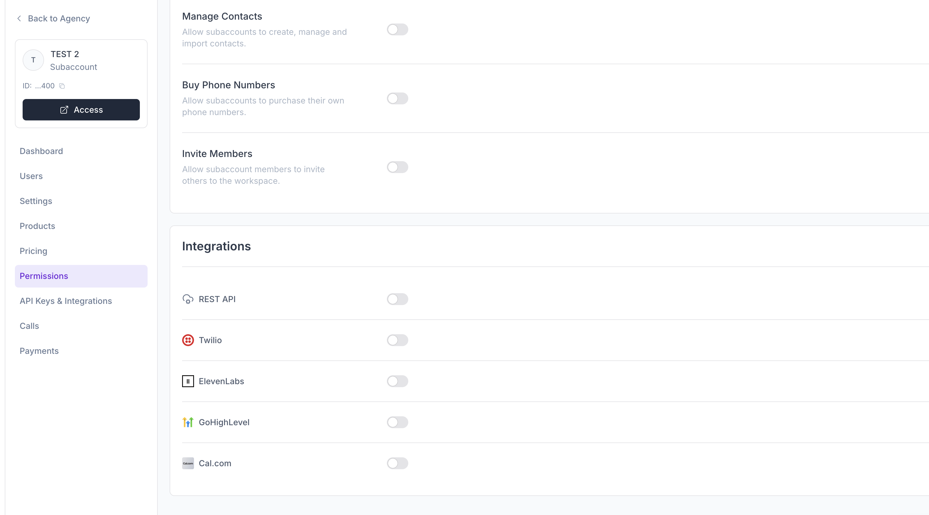 Include HubSpot within subaccount permissions so subaccounts can integrate their own HubSpot account.